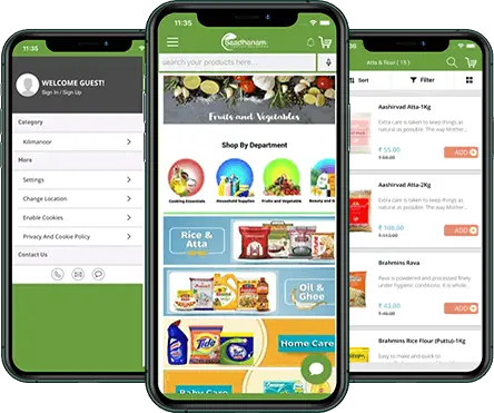 - Kerala based supermarket app with multi-level product categories.